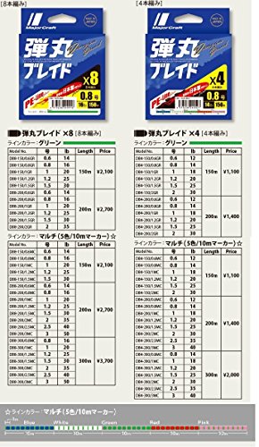 メジャークラフト PEライン 弾丸ブレイド 4本編み マルチカラー DB4-150/2MC マルチカラー 150M/2.0号