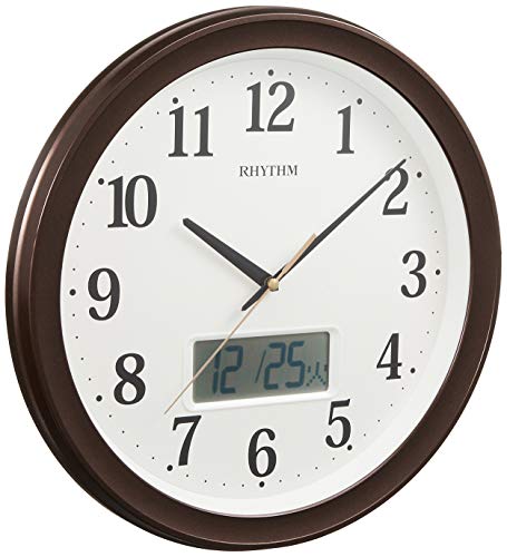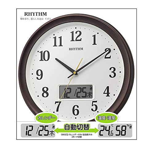 リズム(RHYTHM) 掛け時計 茶 Φ32.5x5cm 電波 アナログ デジタル 連続秒針 温度 湿度 カレンダー 8FYA02SR06