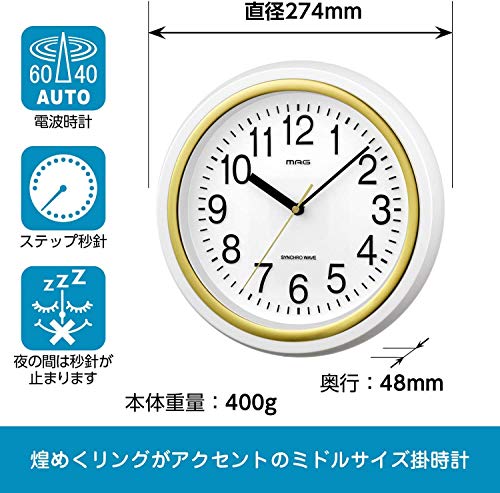 MAG(マグ) 掛け時計 電波 アナログ テンマ ホワイト W-754WH-Z 中
