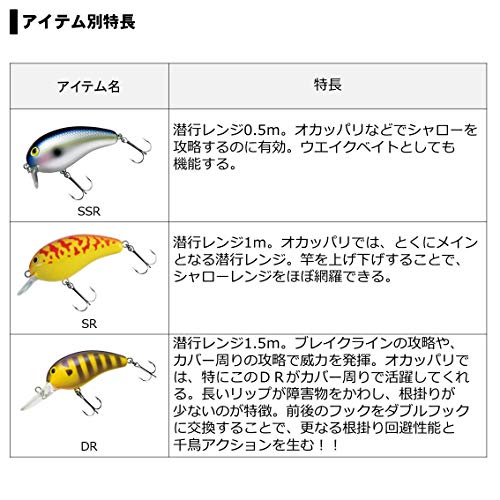発売以来、天文学的な数のピーナッツが数多のアングラーに使われ続けてきたが、その理由はただ一つ、釣れるから。これ以外ない。数えきれないほどのクランクベイトが存在する中、今なお埋もれない本物の食わせのサイズとアクションの黄金比は初心者からトップトーナメンターまで幅広い層に愛され続けている。とにかくよく飛び・よく泳ぎ・よく釣れる。釣り人の意思を忠実に実行するその素直さは、クランクベイトの不変不朽のスタンダードと呼ぶにふさわしい。まさにピーナッツさながらの小粒なボディにも関わらず、
