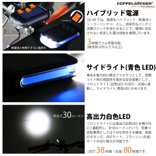 DOPPELGANGER インテリジェントハイブリッドソーラーLEDライト ニッケル水素電池内蔵 単4乾電池併用可 サイドブ