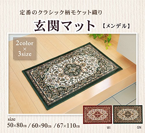 イケヒコ 玄関マット メンデル ワイン 約50×80cm 王朝柄 あがり框 洗える #2028030