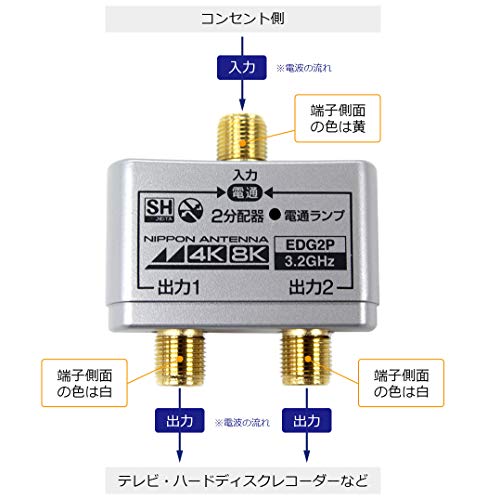 【用途】4K8K対応(3224MHz) テレビの電波を2つに分けることができ、全端子電通型で、全ての電気を通すことが可能です。