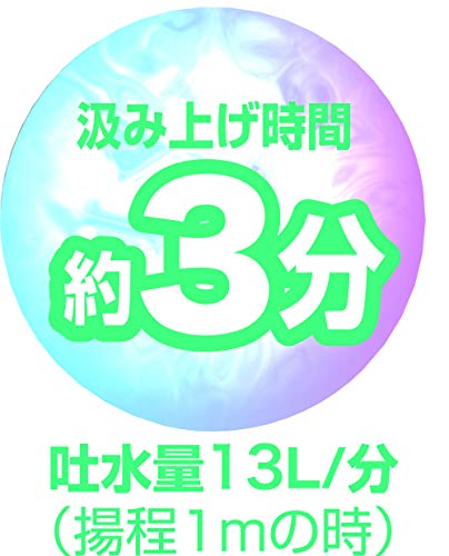 仕様:(給水量)約13リットル/分(揚程1mのとき) (汲み上げ時間の目安)40リットルの場合、約3分