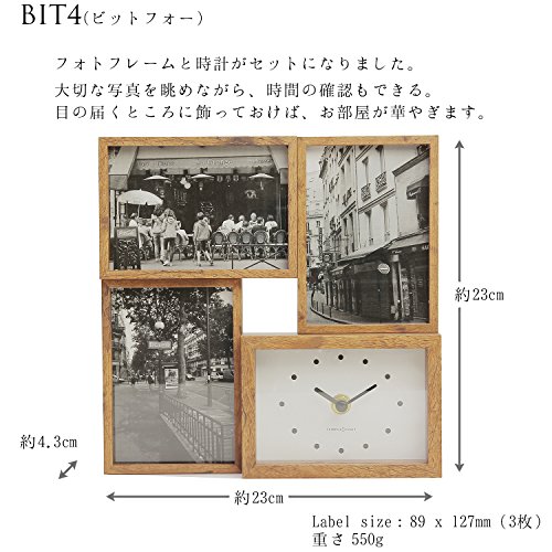 フォトフレーム 兼用 時計 ビット フォー 壁掛け 置き 兼用 4.3×23×23cm 2452