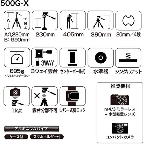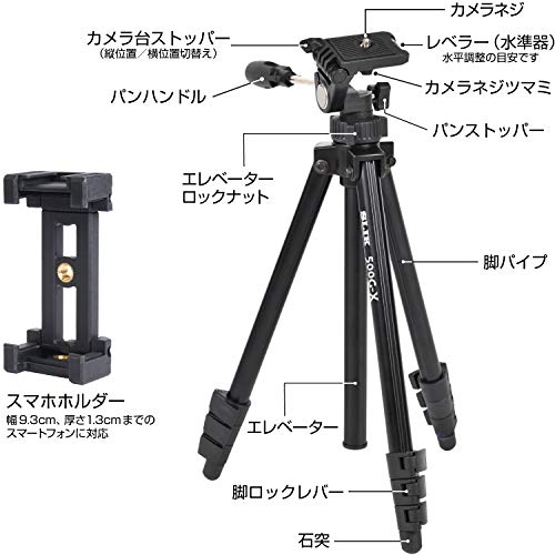 SLIK 三脚 500G-X 4段 レバーロック式 スマートフォンホルダー付属 軽量タイプ ブラック 217177