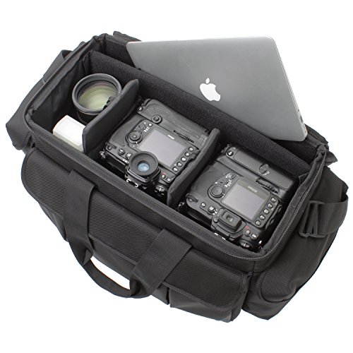 収納例 : バッテリーパック付きの一眼レフ2台+16-35mmF2.8+24-70mmF2.8+70-200mmF2.8クラスのレンズ+ストロボ+ノートPC(最大で15インチMacBookProに対応)背負いベルト装着可(別売)