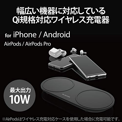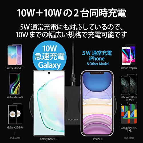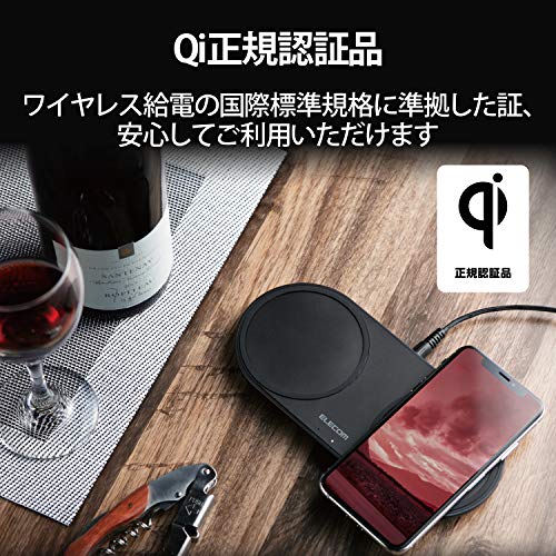 エレコム ワイヤレス充電器 Qi対応 卓上 Galaxy 10W / 他 iPhone 5W ブラック W-QA13BK
