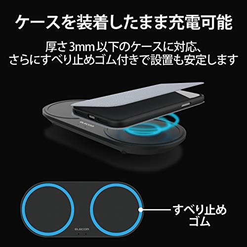 スマートフォンや他のQi対応機器を置くだけで、2台同時に充電できるQi規格対応ワイヤレス充電器です。