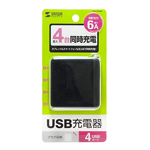 サンワサプライ USB充電器 4ポート 合計6A 4台同時充電可能 高出力タイプ ACA-IP54BK