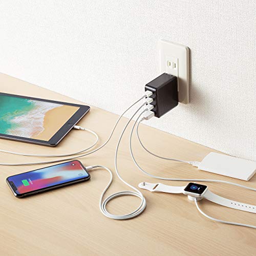 スマートフォンやタブレットなどを最大4台同時に充電できる合計出力最大6Aの高出力USB充電器。