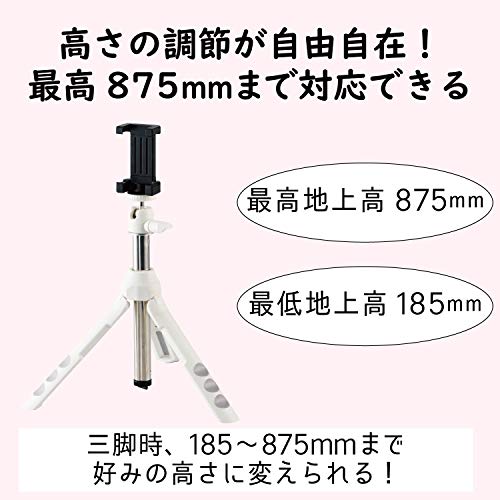 エレコム 三脚 自撮り棒 コンパクト コンパクト 90cm ホワイト P-STSWH