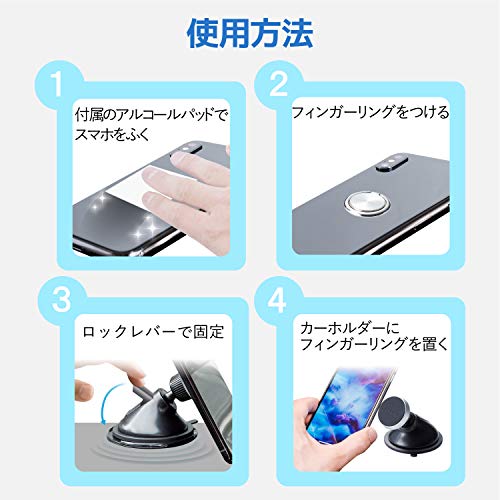 スマートフォンの自重による傾きを抑制する特殊構造を採用し、マグネットホルダーに最適化した設計のフィンガーリングが付属しています。