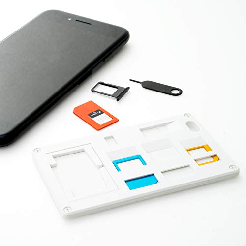 SIMカードのサイズを変換するアダプタを、それらを収納するケースのセットです。