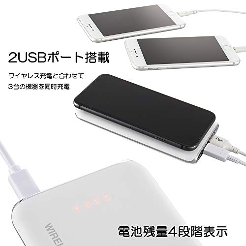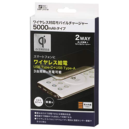 オーム電機 モバイルチャージャー ワイヤレス対応 5000mAhタイプ ホワイト SMP-JV41W 05-1194 OHM 幅71×高さ140×奥行き