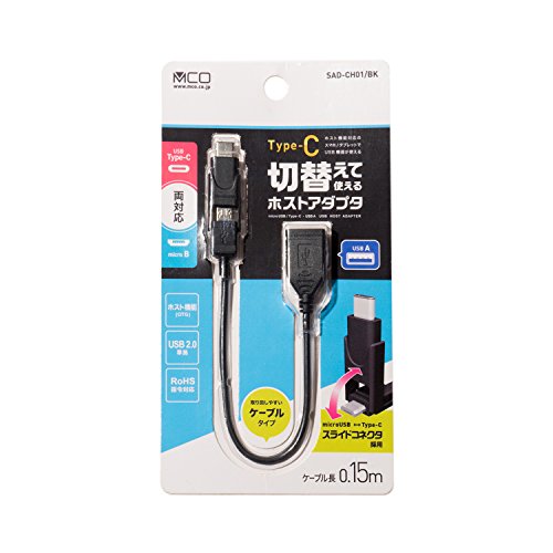 ミヨシ MCO USB マイクロB/USB TypeC対応ホストアダプタ ブラック SAD-CH01/BK