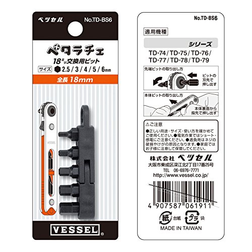 ベッセル(VESSEL) 極薄 板ラチェット交換用ビットセット TD-BS6