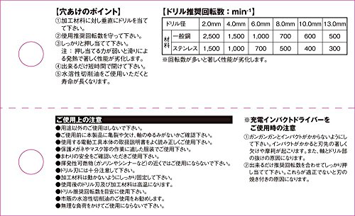 標準穴あけ可能厚:(鉄)2.0mm・(木)らせん溝長の2/3程度