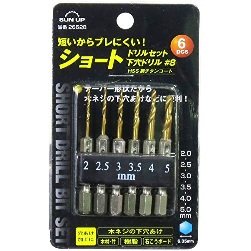 SUN UP ショートドリルセット8 下穴ドリル 6PC
