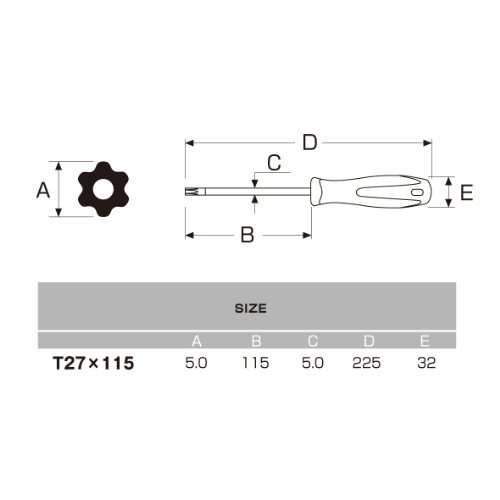 アネックス(ANEX) T型ヘクスローブドライバー T27×115 No.6300