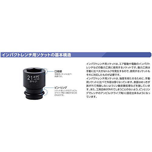 KTC(ケーテーシー) インパクトレンチ ソケット (ディープ薄肉) 19.0mm (3/4インチ) 29mm ピン・リング付 BP6L-29TP