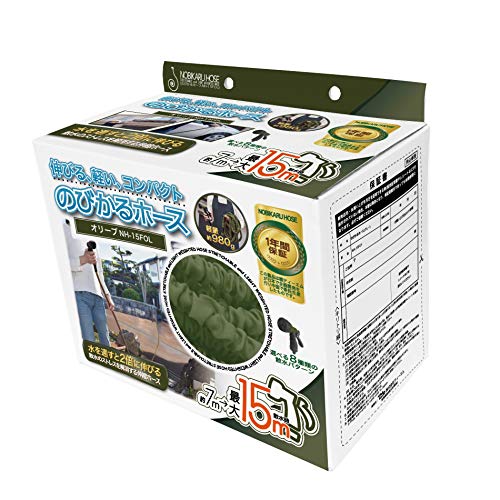 ティーエム(TM) 散水ホース 伸びる、軽い、コンパクト のびかるホース NH-15FOL 15m オリーブ