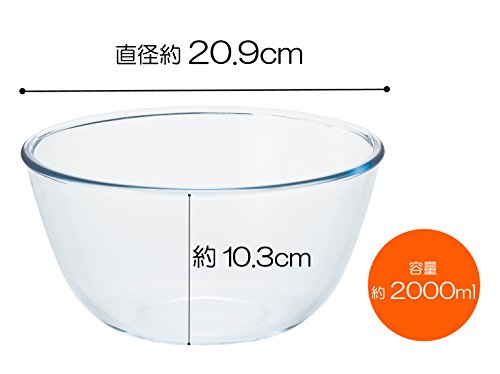 アデリア 耐熱ガラス 最大20.9×高10.3cm ベイクック ミキシングボウル 2000ml 電子レンジ対応H-3933