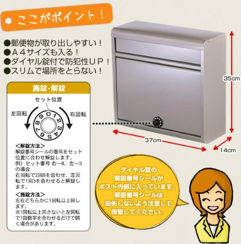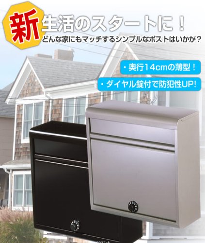 グリーンライフ(GREEN LIFE) 郵便ポスト 薄型スチールポスト ダイヤル錠 A4封筒が入る マットブラック 奥行14.0×