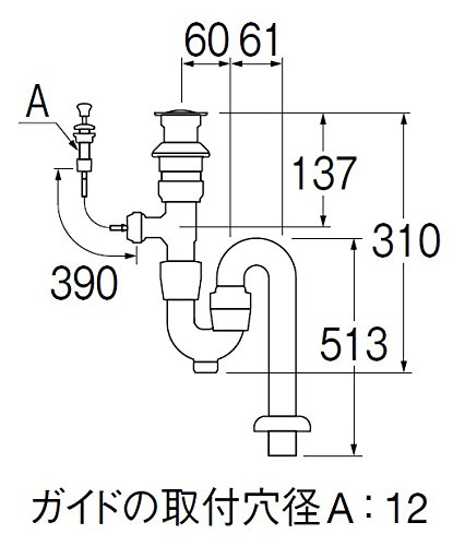 SANEI 洗面排水栓付Sトラップ ポップアップ用 オーバーフロー パイプ径38mm H7722-38