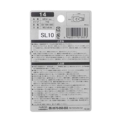 PIAA ハイマウントストップ/ウインカー/バックランプ用 ハロゲンバルブ T16(W2.1x9.5d) クリア 2個入 12V 16W HR14