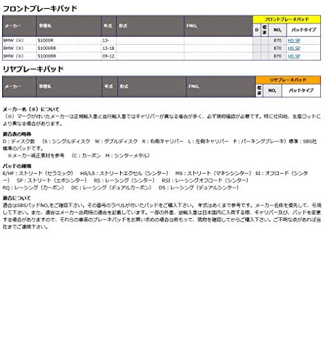 キタコ (KITACO) SBS ブレーキパッド 870SP エボシンター BMW S1000R S1000RR 777-0870050