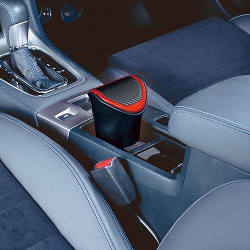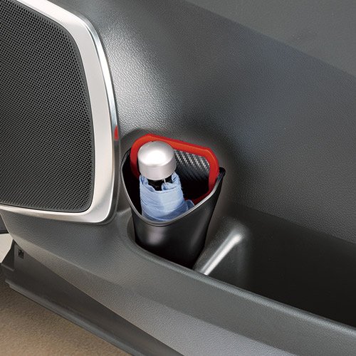 カーボン調+アクセントカラ-デザイン、ドアポケットに納まるボトルタイプダストパック