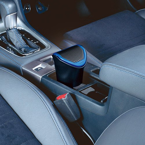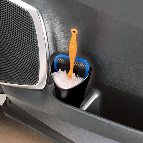 カーボン調+アクセントカラ-デザイン、ドアポケットに納まるボトルタイプダストパック