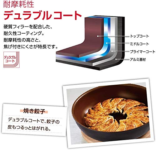 素材・材質:本体/アルミニウム合金、はり底/ステンレス鋼 (クローム13%)、表面加工/(内面)ふっ素樹脂塗膜加工・(外面 底面を除く)焼付け塗装、専用取っ手/フェノール樹脂・ナイロン