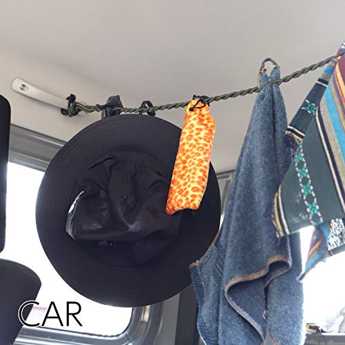 クリップを必要としないツイストタイプで軽量の物干しやテント内の小物の整理に便利。コンパクトに収納できる。