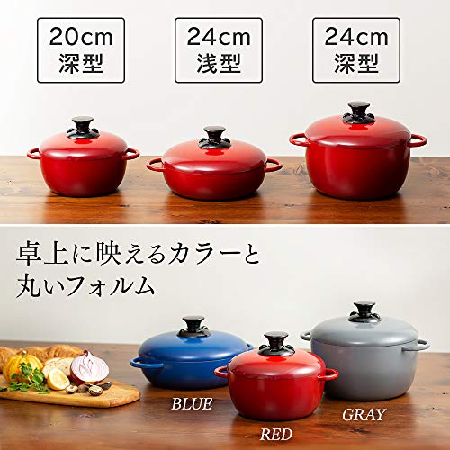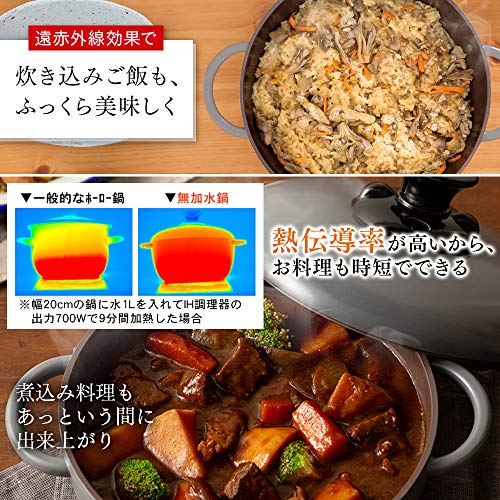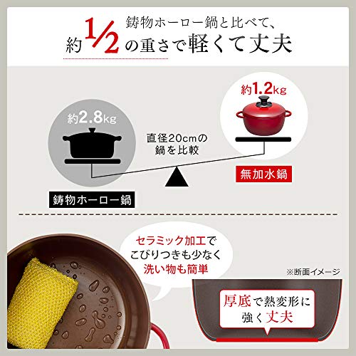 アイリスオーヤマ 両手鍋 無加水鍋 20cm ガス火/IH対応 深型 お手入れ簡単 時短・節約 レシピブック付き ブルー