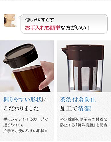 アスベル 冷水筒 ドリンク・ビオD-112T フィルター付 1.1L 縦横置き 茶しぶ不着防止加工 ホワイト 8039