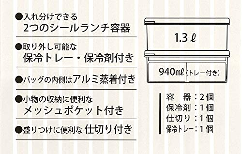 総容量/2.6L 容量:容器=1.3L、トレー付容器=940ml耐熱温度:フタ=60度、本体・仕切・保冷トレイ=120度
