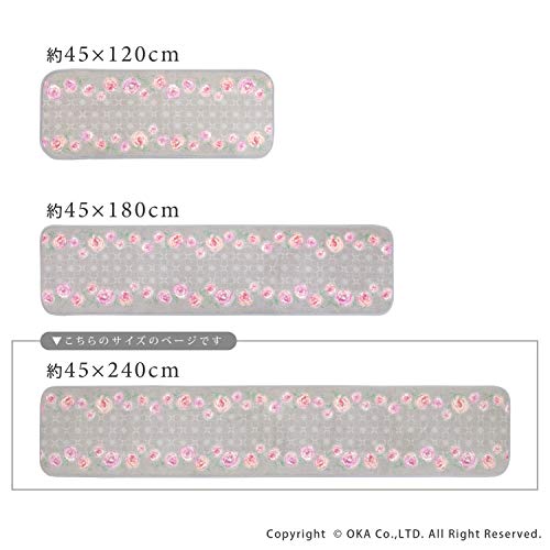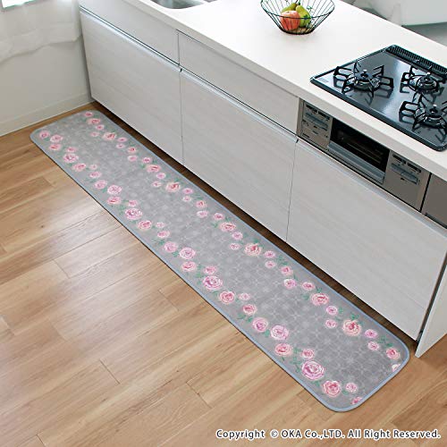 オカ(OKA) キッチンマット グレー 約45cm×240cm ロイヤルコレクション チェルシー (バラ エレガント)