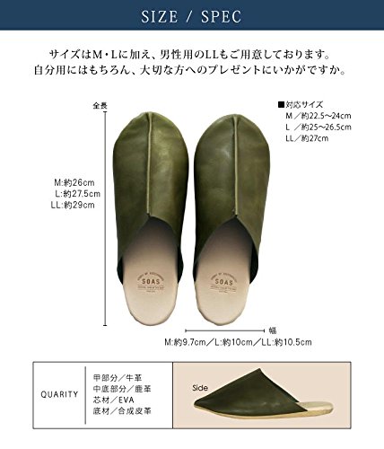 日本製 本革 ルームシューズ SOAS (M, ブルー)