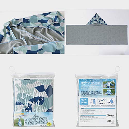 SPICE OF LIFE(スパイス) 冷感 ウォータークールタオル フード付き アイスブルー UVカット UPF50+ 収納ポーチ入り SF