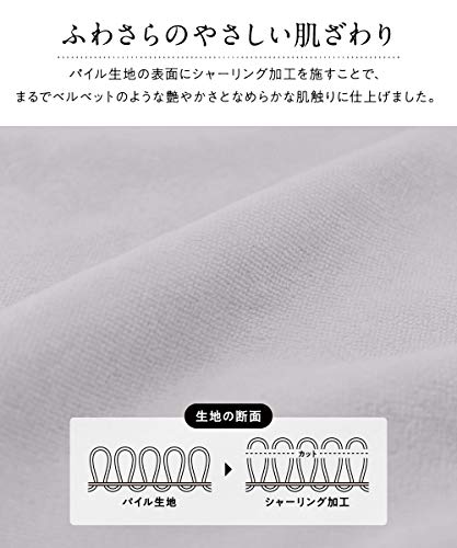 【特長1】ふわさらのやさしい肌ざわり パイル生地の表面にシャーリング加工を施すことで、まるでベルベットのような艶やかさとなめらかな肌触りに仕上げました。