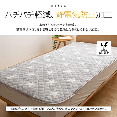 mofua(モフア) 敷きパッド シングル 星柄グレー あったか ふんわり エコテックス認証 静電気防止加工 プレミア