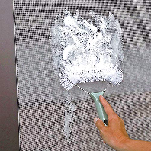 網目を傷めないしなやかなブラシで網戸のお掃除。