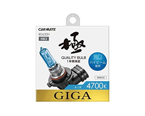 カーメイト 車用 ハロゲン ヘッドライト GIGA エアー ハイビーム専用 HB3 4700K 1100lm ホワイト BD630H