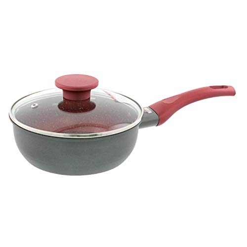 ベストコ ソースパン レッド&シルバー 18cm フライパンにも使える IH ガラス蓋付 ND-5451
