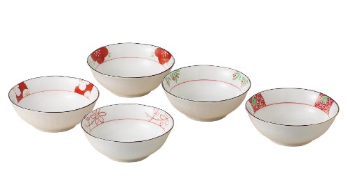 西海陶器 波佐見焼 赤絵絵変り 小鉢 5個セット 直径12cm (化粧箱入) 31931