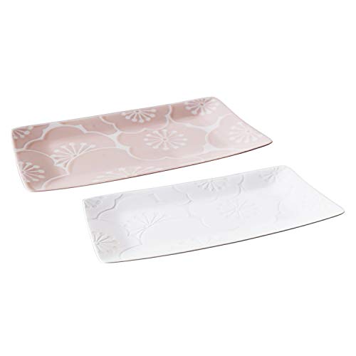 西海陶器 波佐見焼 はふり 長角皿 ペア 桃白 52860 25cm