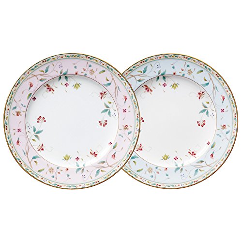 Noritake ノリタケ プレート ( 色変り ペアセット ) 21cm 花更紗 2枚 ピンク ・ ブルー ボーンチャイナ P97211/4409-56