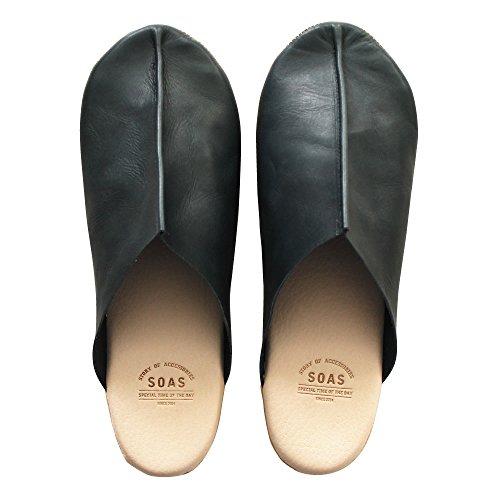 日本製 本革 ルームシューズ SOAS (M, ブルー)
